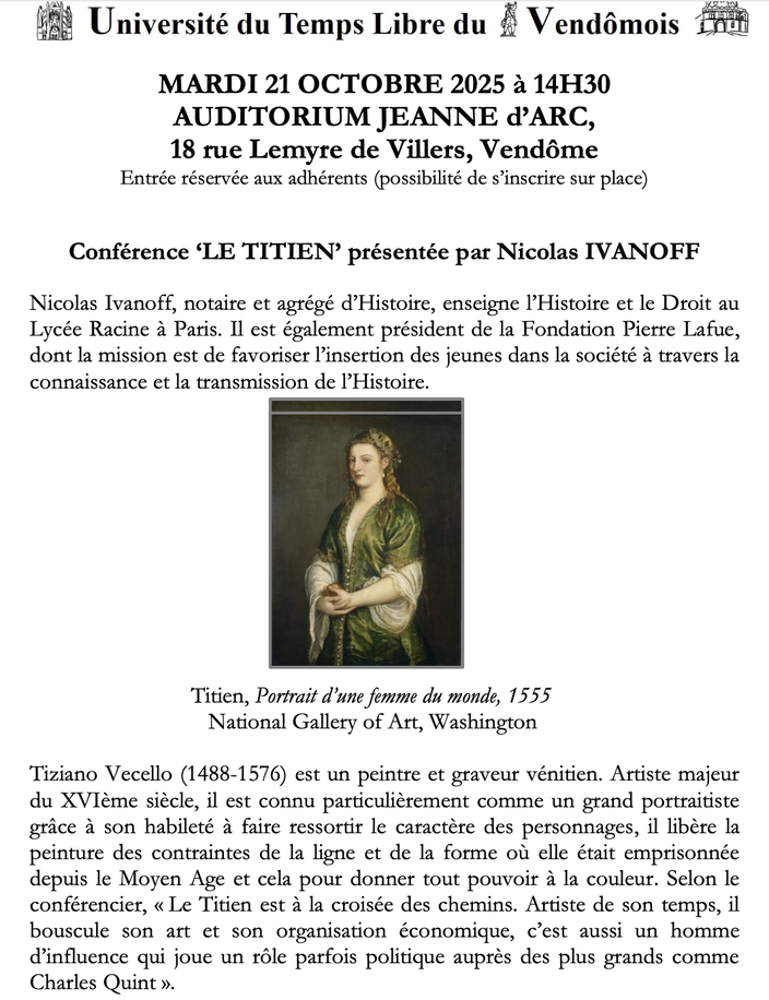 (à l’auditorium du Lycée-Collège St Joseph rue Lemyre de Villers à 14 h 30)